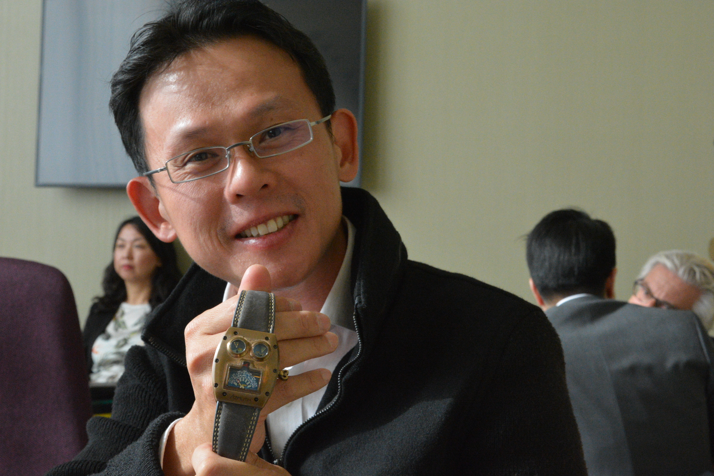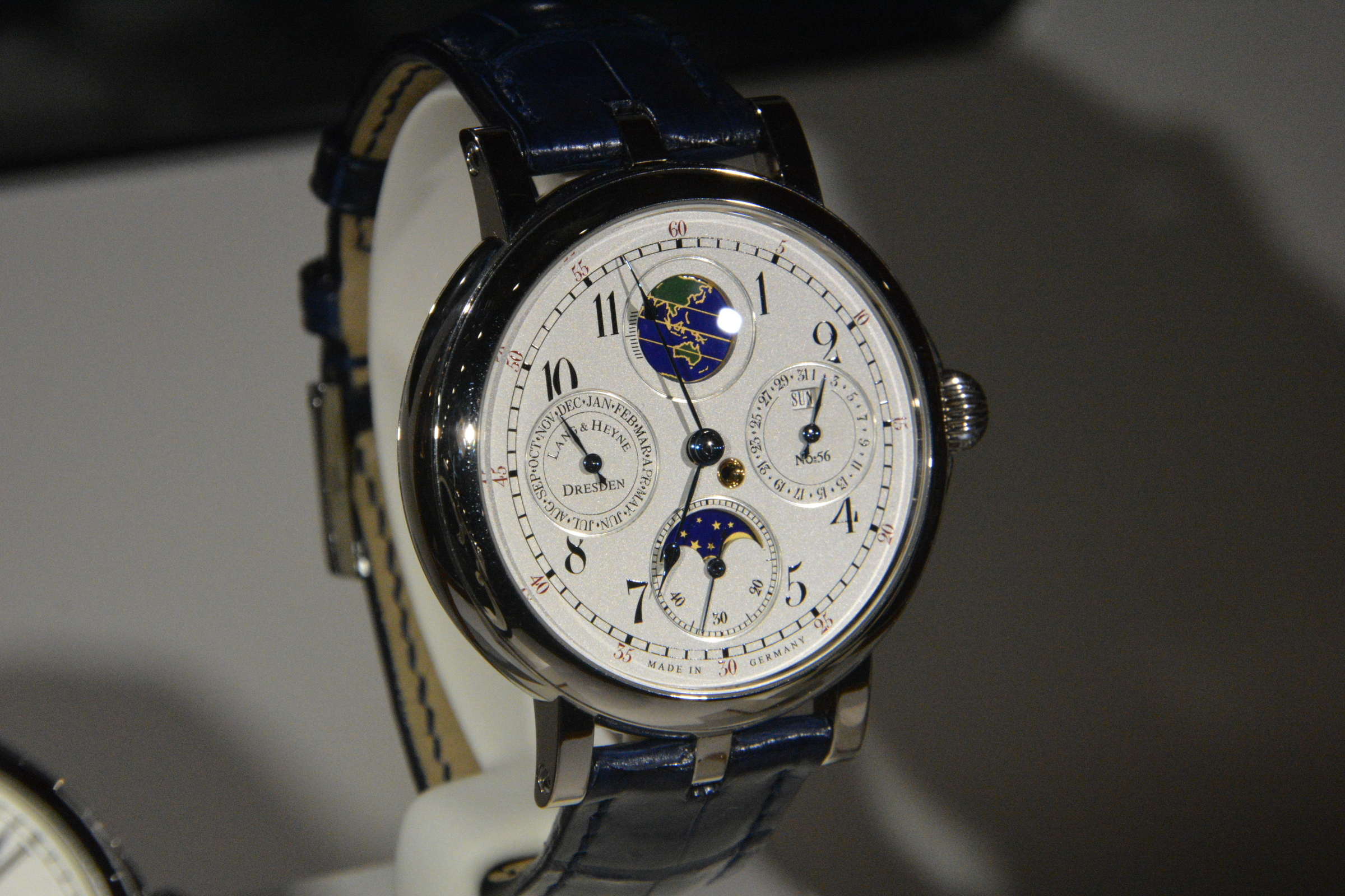 But the pièce de resistance was undoubtedly a tiny ring-shaped part of silvery metal, stainless steel I assumed, which he picked up with a pair of tweezers and held up to the light. I had no idea what it was. He explained forthwith: It was the frame of the watchstrap moon phase he’s made for the MIH watch. The story behind it was typical Gerber: A customer had wanted a moon phase on his MIH watch and rather than clutter up the dial of the minimalist watch, he decided to sink a small, battery driven moon phase into the strap, an innovative idea, if I ever heard one.