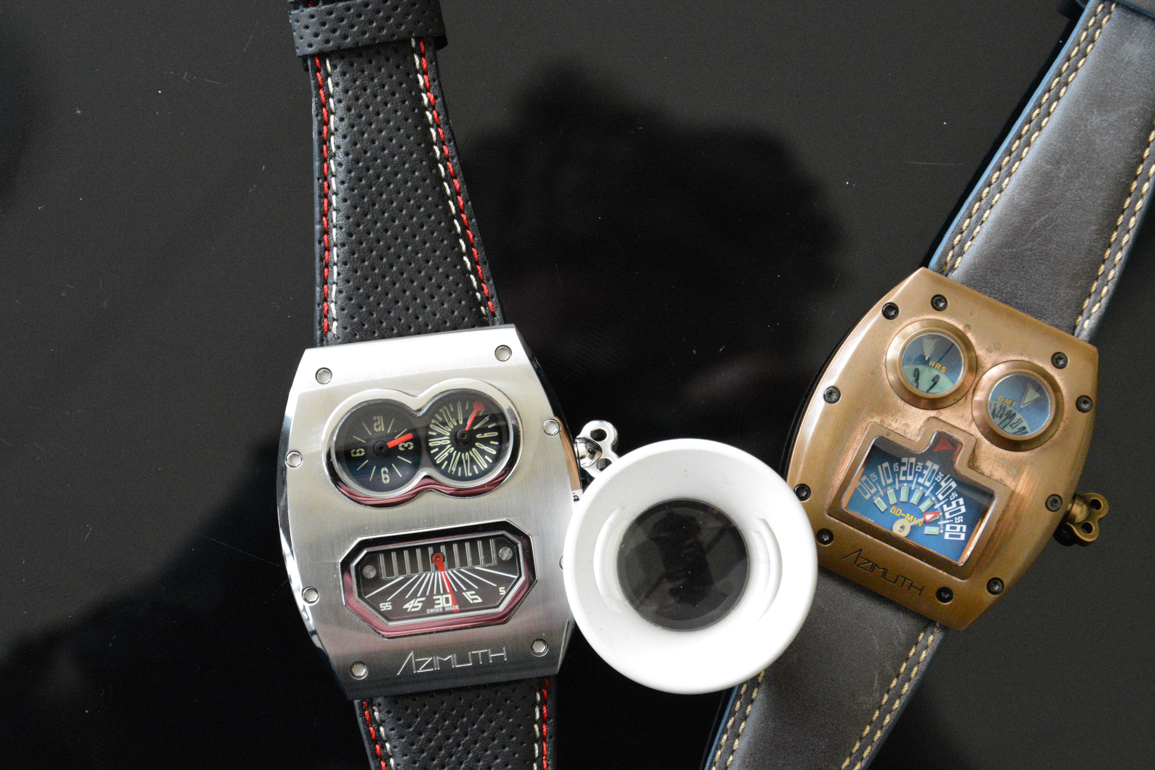 He had more to show me, down in his Ali-Baba’s cave, The Basement. Bellies full, we browsed through pictures of his special car, a Fiat 600 Multipla from the late 50s, adoringly restored. Interesting: Many watchfolk I know have flashier vehicles, but this one has personality… He dug up some mechanical place-name holders that show the diner’s name when a lever was depressed. I asked him about the amazing Earl of Arran watch, and he dragged me – where I had sweated for three days two years earlier decorating that Unitas movement – was a large and beautiful box with a leather insert, for the latest iteration of the (see the article on Paul Gerber, P. 1).