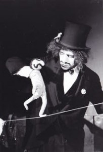 The tours began. First to France, then Germany, later to Eastern Europe and England. Soon, they were able to live from puppeteering and decided to buy a big 1947 Saurer bus to save themselves the cost of hotels. Ironically, the vehicle had originally been used by the post office to transport people as well as mail. They travelled about 12,000 miles a year. When the children came (born in 1976 and 1980 respectively) the trips became shorter, or Michel’s mother had to step in as a baby-sitter. Their shows evolved and expanded as new puppets were created and new tales added. Michel had found his calling in the creation of a string of “circuses” with special puppets. In Pécs, Hungary, they won a prize for his “Cirque philosophique,” which combined music (Tina on accordion) and Latin texts. They performed at festivals and in schools, for Christmas and Easter.