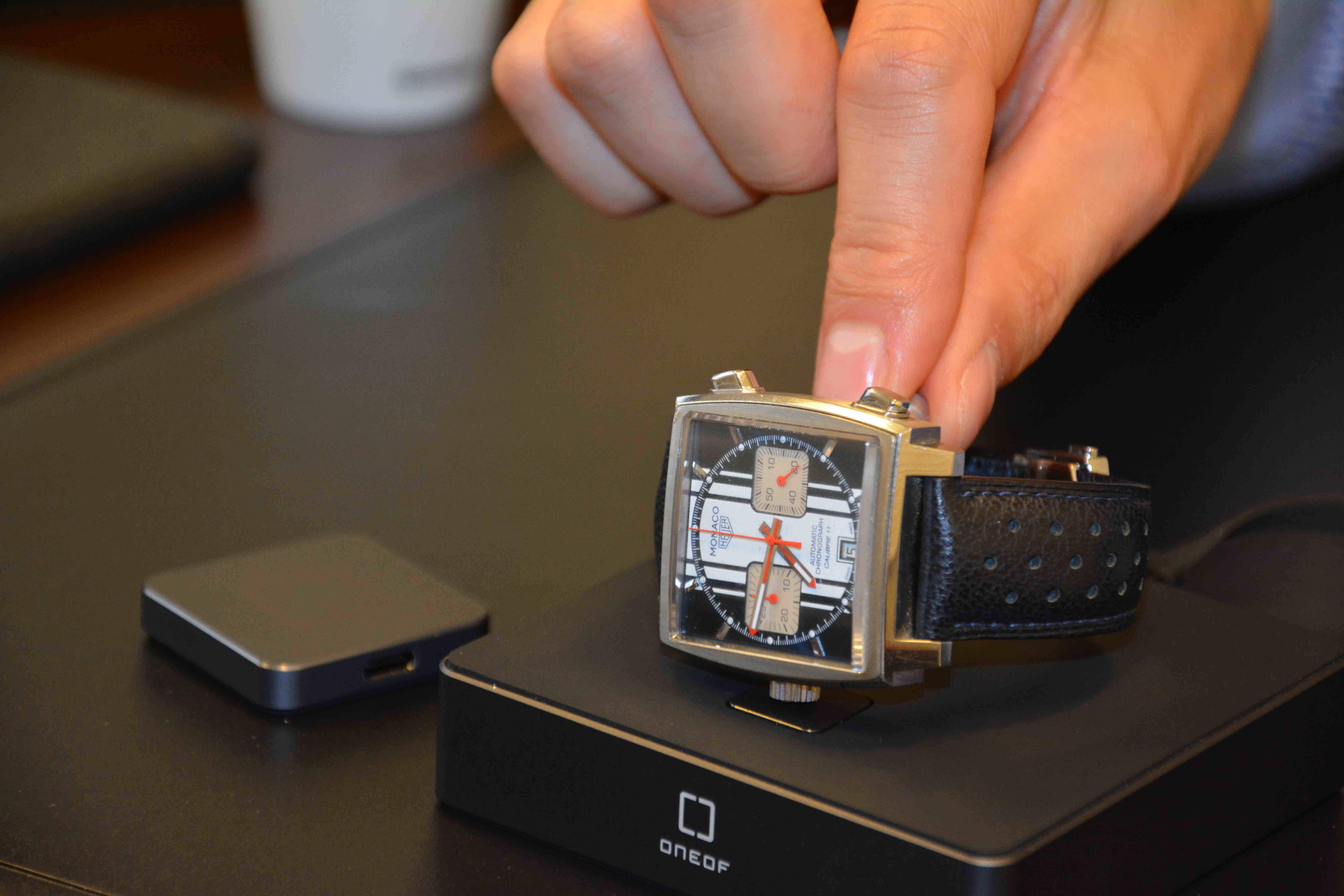 A similar product has been manufactured by a Geneva-based company called Lepsi. Their Watch Analyzer, for example, will do what any tester must: Measure rate variation, amplitude, and beat error quickly, and then reproduce the results on a smartphone or tablet. They also have a portable solution (the Chrono), which connects to a smart phone and is in the same price range as the Oneof mentioned above. But Lepsi has gone a step further with a convenient wireless demagnetizer, which will identify immediately whether your watch has been zapped by magnetic waves in the first place, and it will demagnetize it as well. Just press the button it it has turned red.