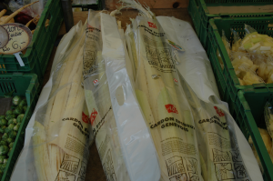 A few years ago, Pierre Gallay, a gardener, explained the cultivation procedure to me. It’s sown in May and grows quickly in summer. In autumn, the leaves on each plant are folded up to promote natural bleaching. In November each cardon is then uprooted by hand along with some earth and put into cool cellars where it continues to grow and bleach out without risking frosts.
